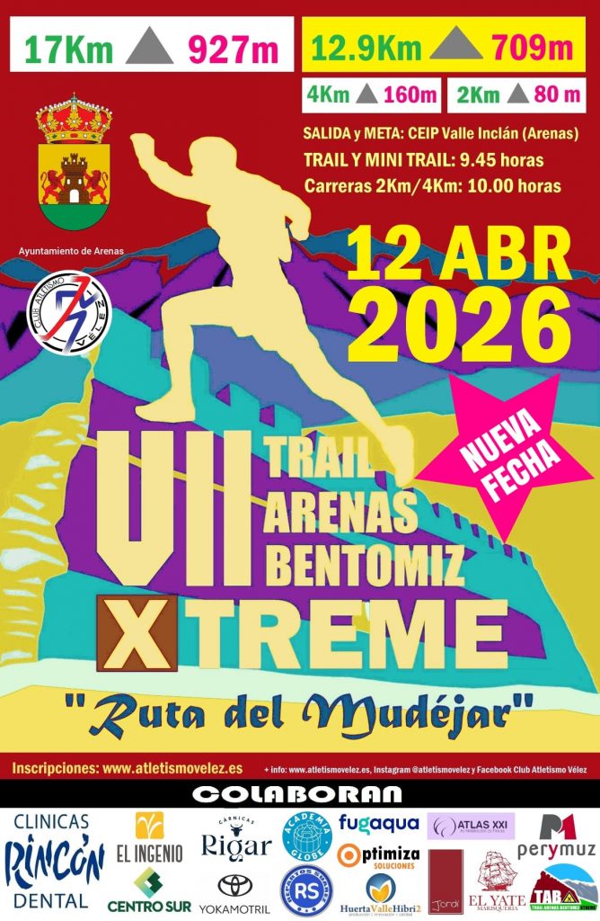 El Excmo. Ayuntamiento de Arenas y El Club Atletismo Vélez Rincón Dental organizan la VII Trail Arenas Bentomiz Xtreme “Ruta del Mudéjar” 2026, “VIITBAX’2026”, que se celebrará el día 8 de febrero de 2026 a partir de las 9:45. Nº máximo de inscritos 400. Habrá distintas distancias para las diferentes categorías. Consultar el reglamento. Inscripción […]