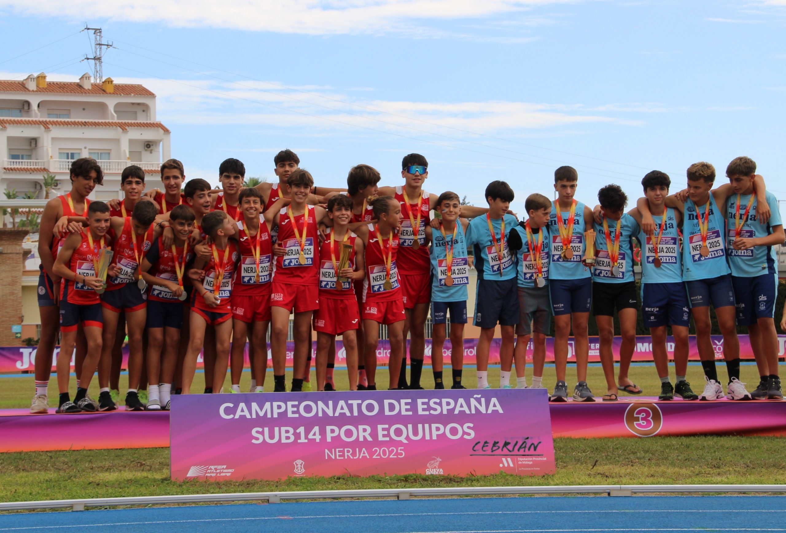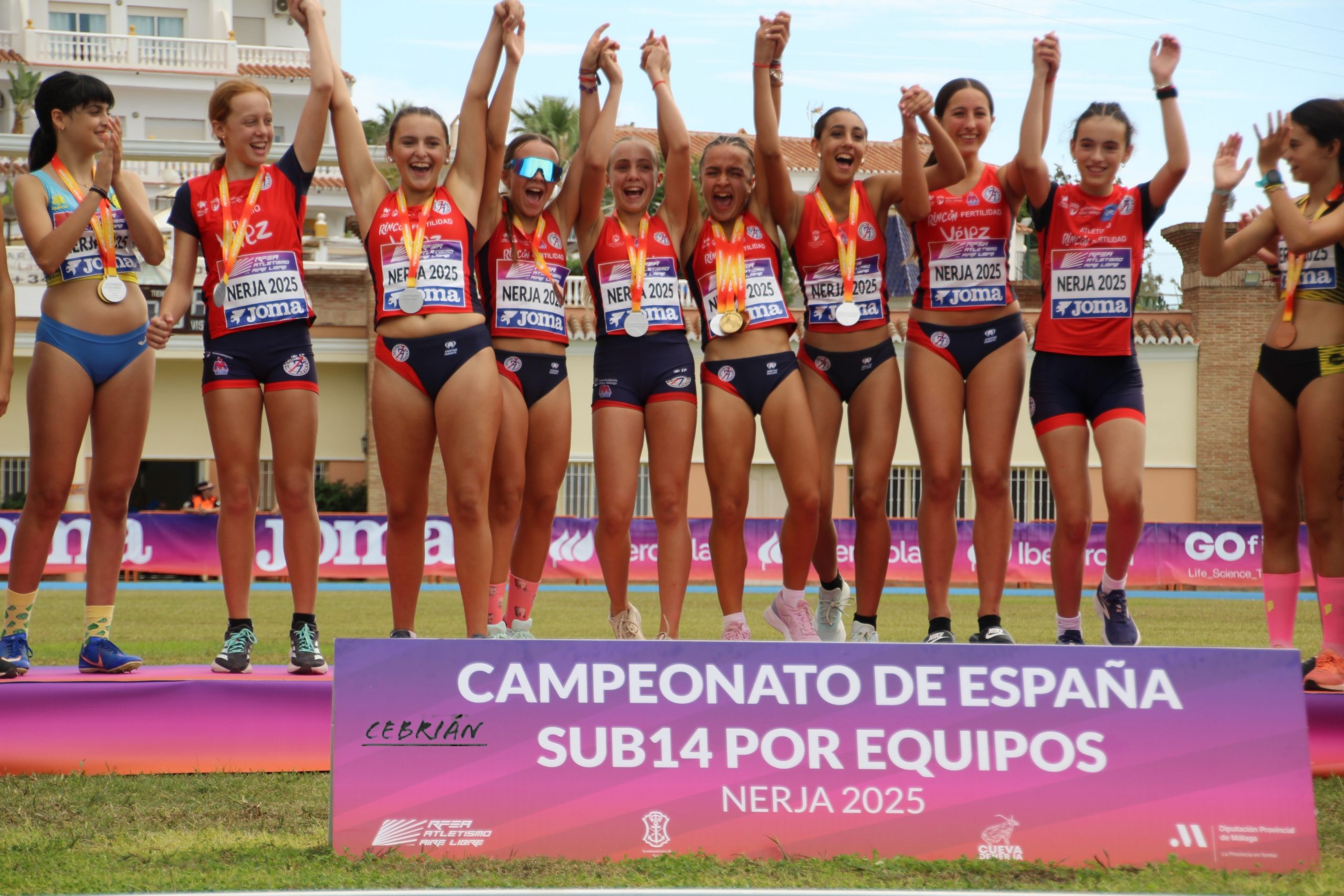 Los equipos femenino y masculino del Club Atletismo Vélez Rincón Dental han firmado un fin de semana histórico al proclamarse campeonas y subcampeones de España sub-14 por equipos 🥇🥈 en el Campeonato de España celebrado en el estadio Enrique López Cuenca de Nerja.